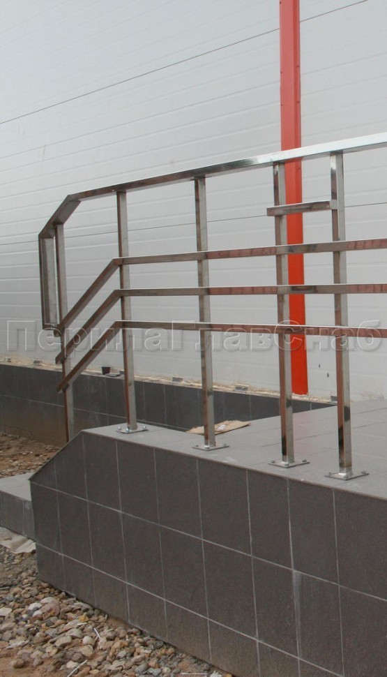 Четыре ригеля на сварке, квадратный поручень и круглые стойки