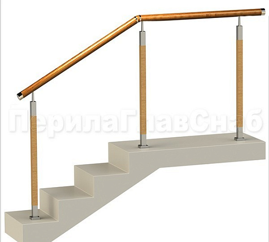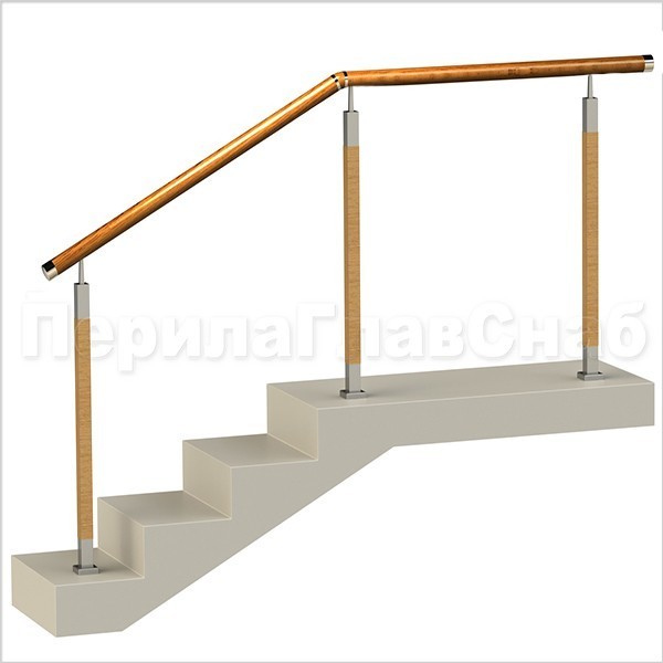 Три ригеля на держателях, квадратный деревянный поручень и круглые стойки