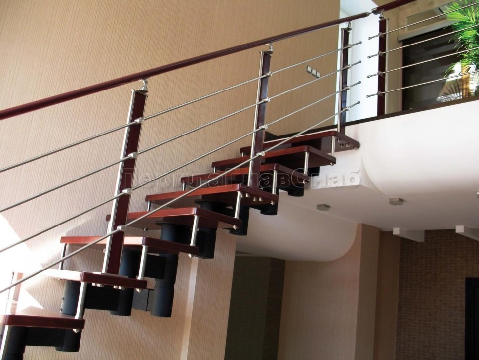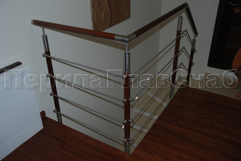 Записаться на встречу Четыре ригеля на держателях, круглый деревянный поручень и квадратные стойки