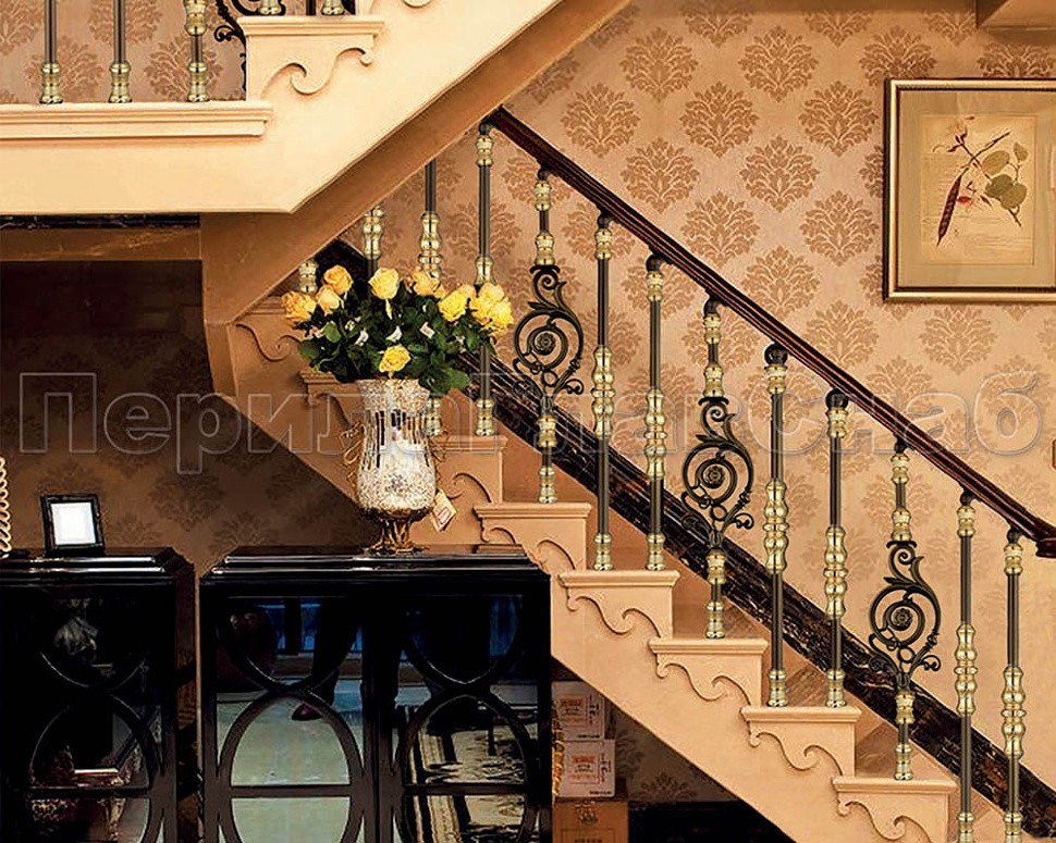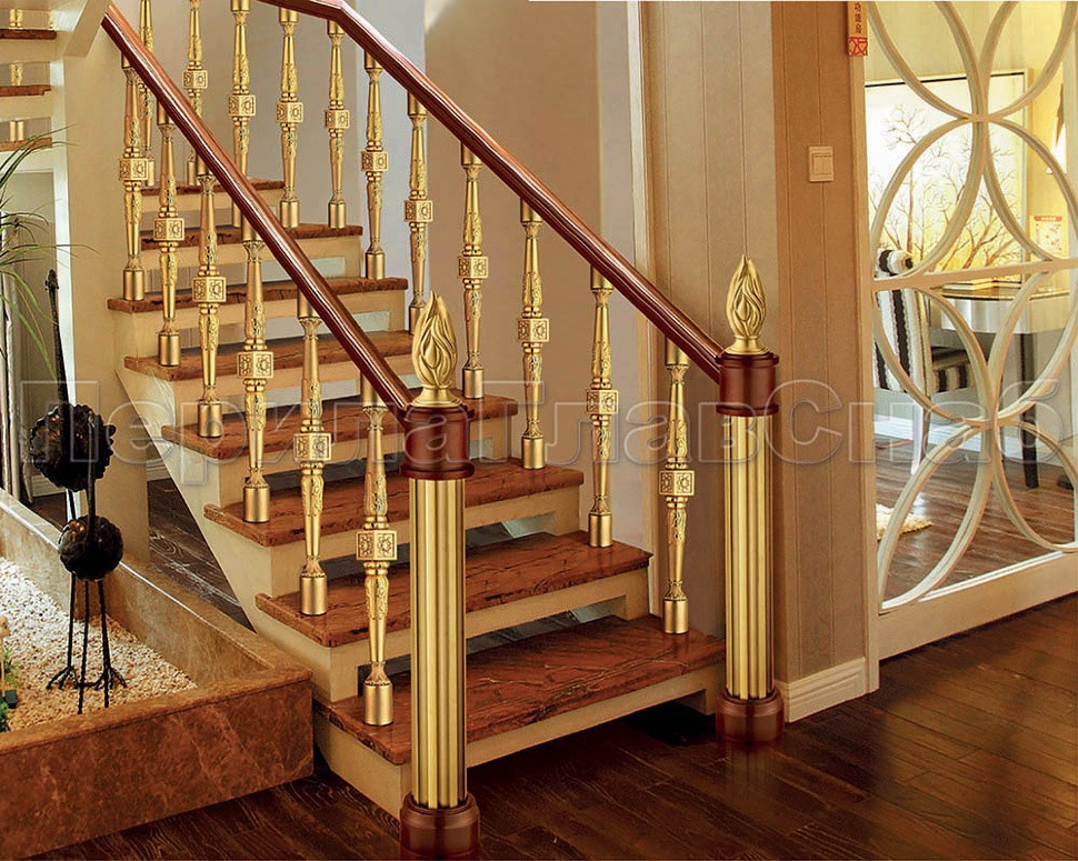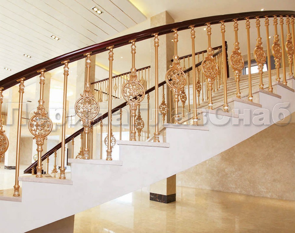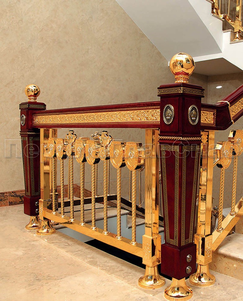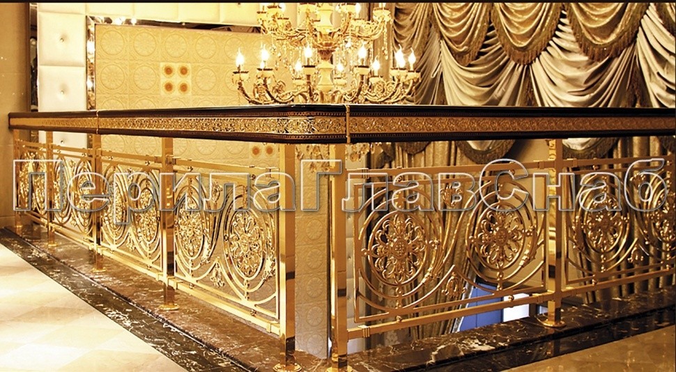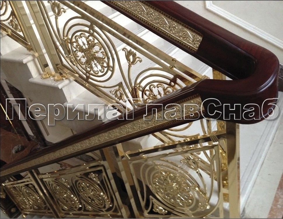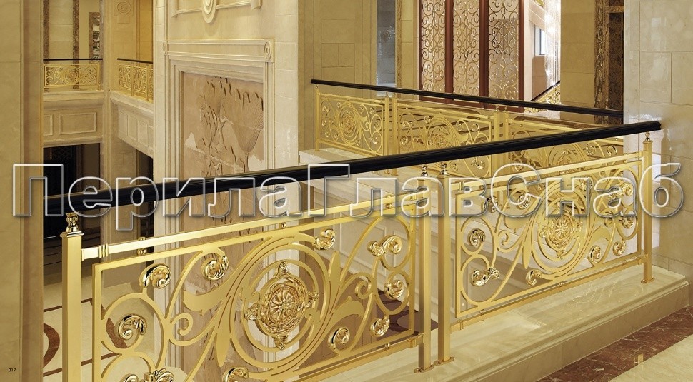 Латунные золотые перила для лестниц позволят подчеркнуть статус здания и безупречный вкус его владельца. Роскошные лестничные конструкции такого типа будут особенно гармонично смотреться в интерьере дорогого ресторана, загородного дома, оформленного в классическом стиле, и проч. Изготовление красивых перил под золото из латуни — уникальная услуга, которую предлагает компания «Перилаглавснаб».