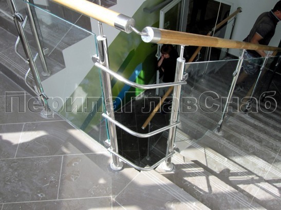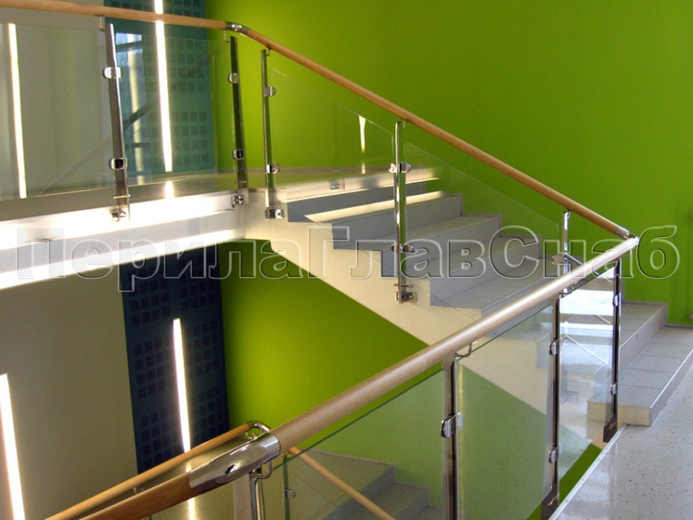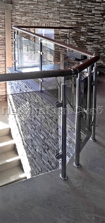 Ограждение для лестницы из нержавейки с зажимными стеклодержателями для крыльца