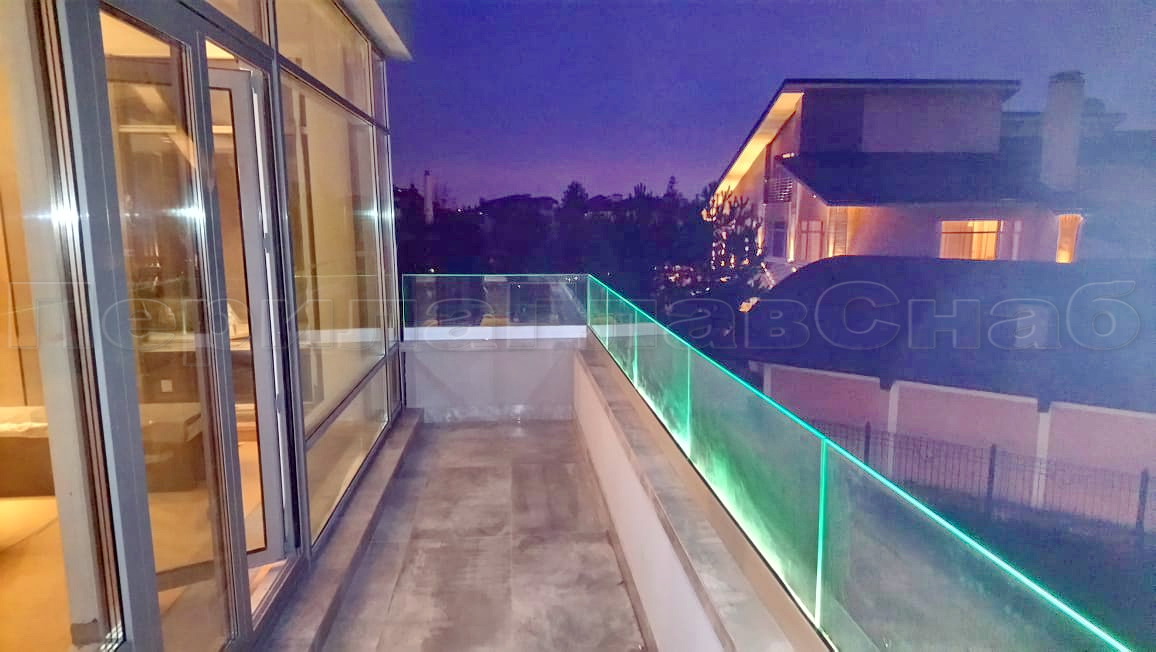 Перила для балкона из нержавейки со стеклянным заполнением лишены этих недостатков. Они изготавливаются из стали высокопрочных марок AISI 304 и AISI 304L, которые рассчитаны на эксплуатацию в условиях повышенной влажности и не нуждаются в защитной обработке. Прозрачные экраны изготавливают из ударопрочного стекла толщиной 10—20 мм. Они могут крепиться к каркасу из нержавейки или устанавливаться в зажимный профиль. Стекло для ограждения балкона декорируют с помощью тонировки, матирования, подсветки, УФ-печати или пескоструйной обработки.