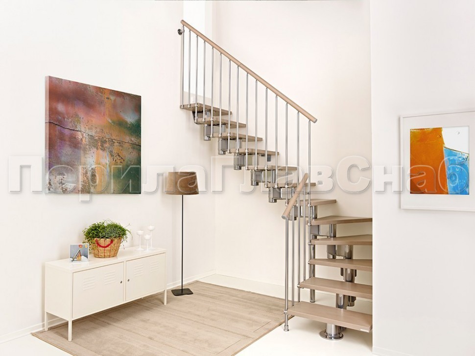Ограждения со стойками в каждую ступень с квадратным деревянным поручнем без ригелей