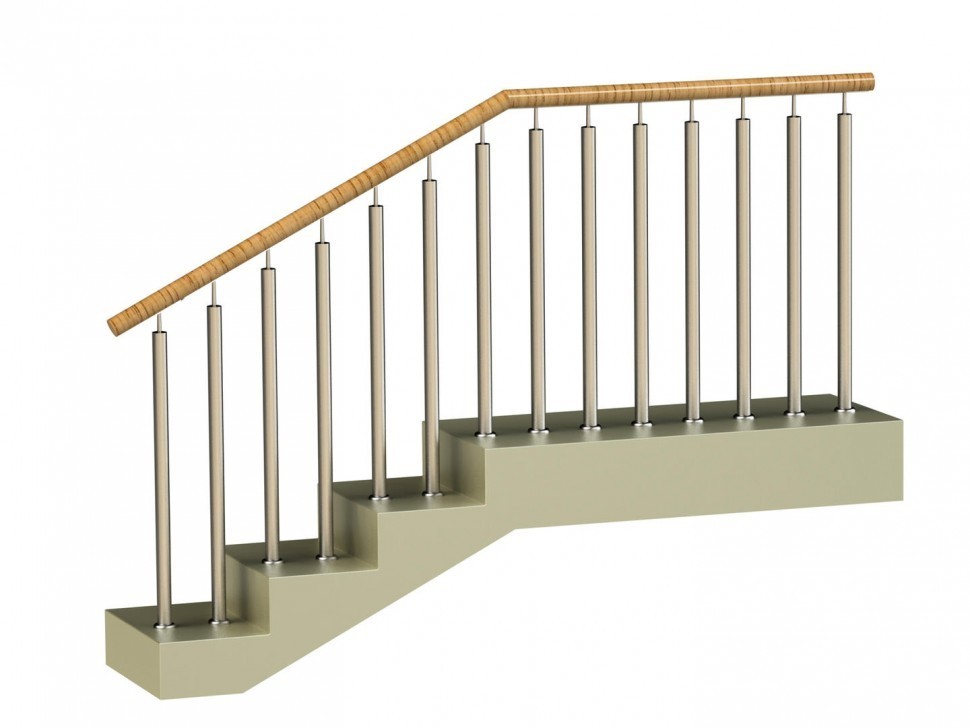 Ограждения со стойками в каждую ступень с круглым деревянным поручнем без ригелей