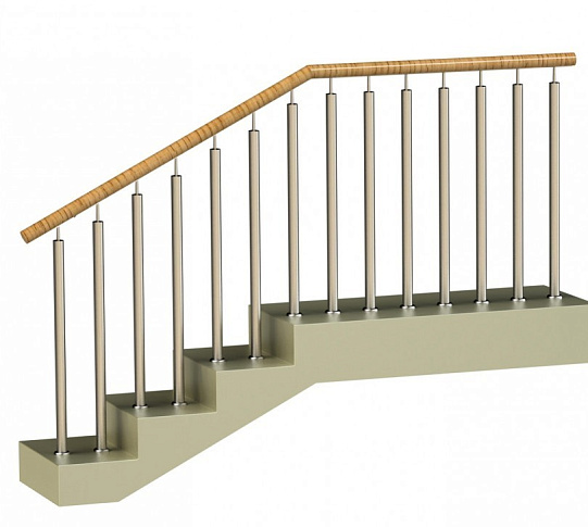 Ограждения с двумя стойками в каждую ступень с деревянным поручнем и без ригелей