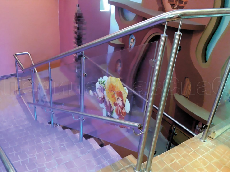 Нержавеющие ограждения для детских садов и учреждений с заполнением из каленого стекла.