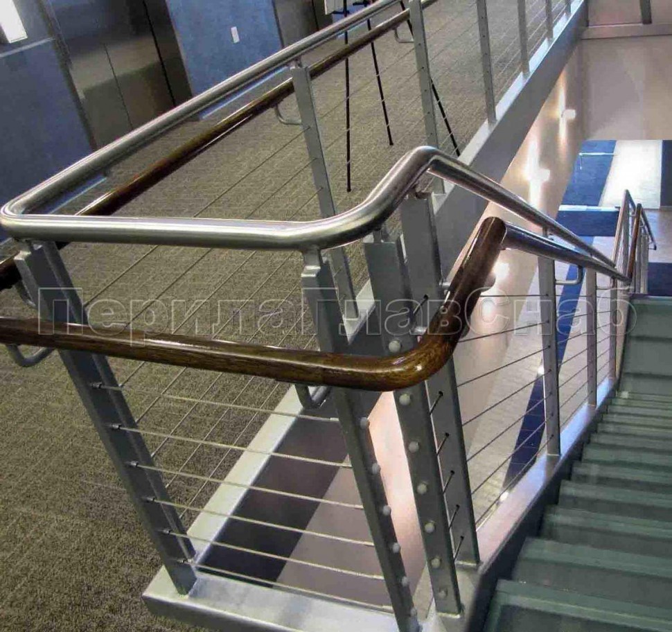 Ограждения с квадратным поручнем и дополнительным поручнем без ригелей