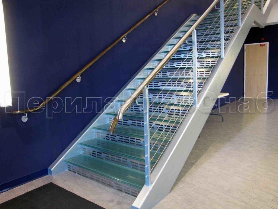 Лестничное ограждение с тремя ригелями и поручнем из латуни