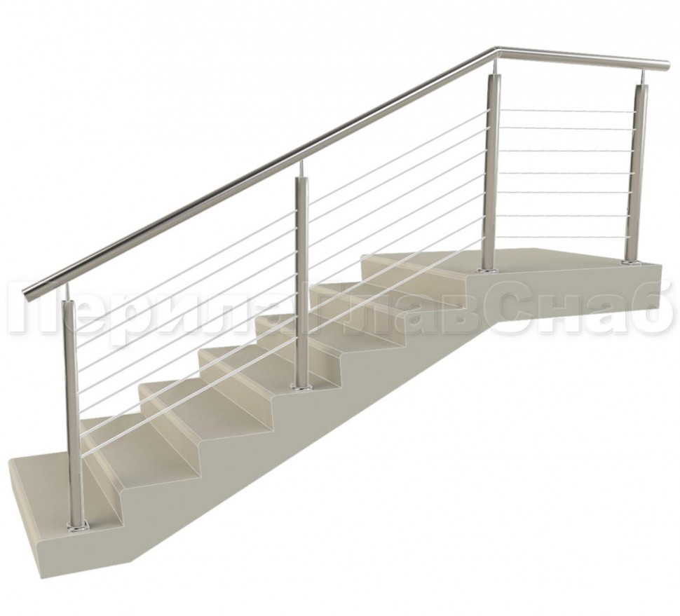 Ограждения из нержавейки. Заполнение из 3х тросиков. Квадратные стойки.