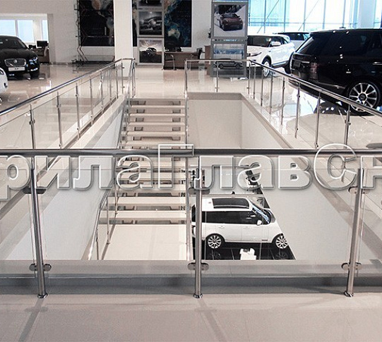 Оптимальное решение для ограждений торговых центров, магазинов - ограждение атриумов и внутренних балконов со стеклом и стойками. Стекло растворяется в пространстве и не отвлекает внимание покупателей от товаров и витрин Такие ограждения являются безопасными для детей - ребенок не перелезет через стекло. Используемое стекло является закаленым и имеет 10-ти кратный запас прочности по сравнению с обычным стеклом. Более экономичный вариант по сравнению с полностью стеклянными ограждениями, но не менее современный по стилю - будет украшением вашего интерьера.