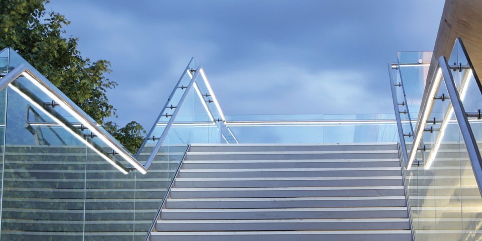 Нержавеющие перила и ограждения со стеклом и подсветкой
