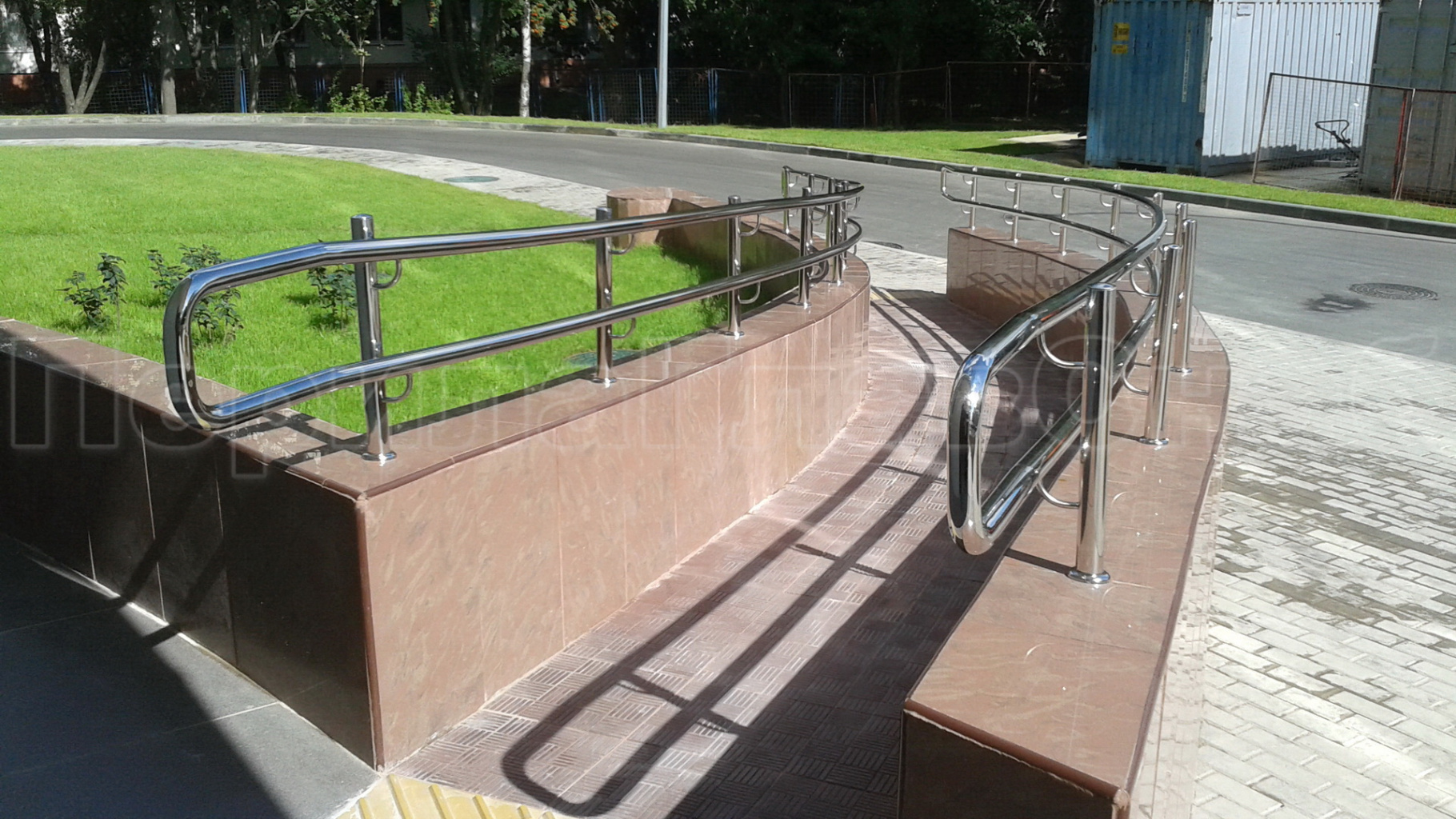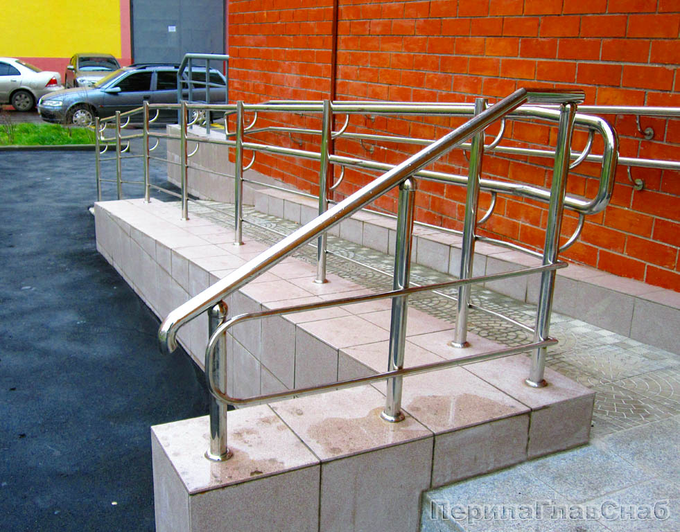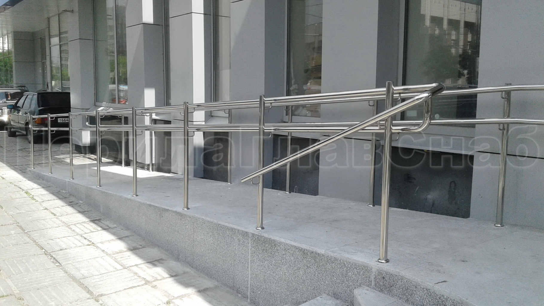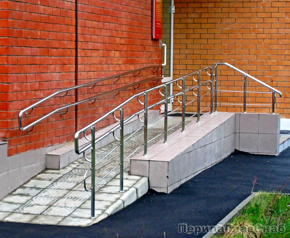 - Опорные перила из нержавейки для инвалидов-колясочников не должны иметь скользкую поверхность. В противном случае за них не будет удобно держаться.