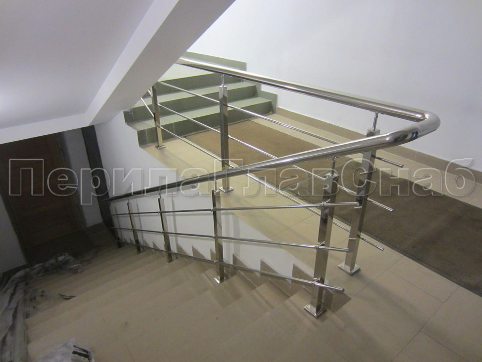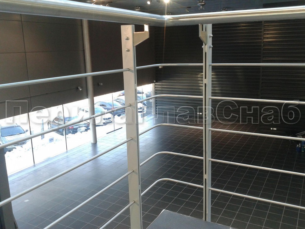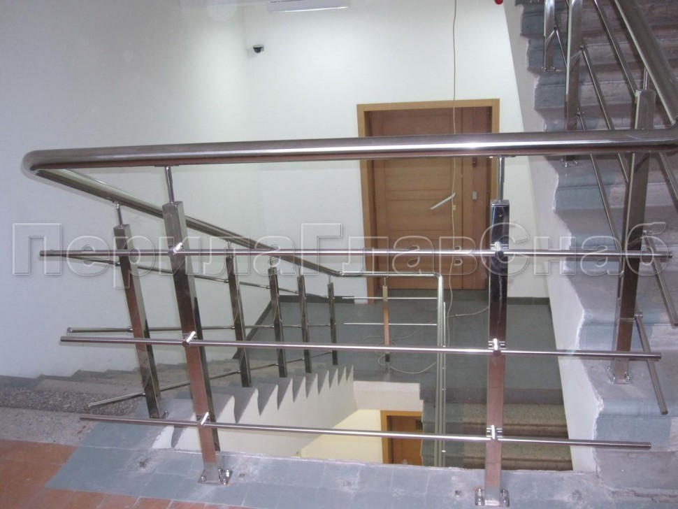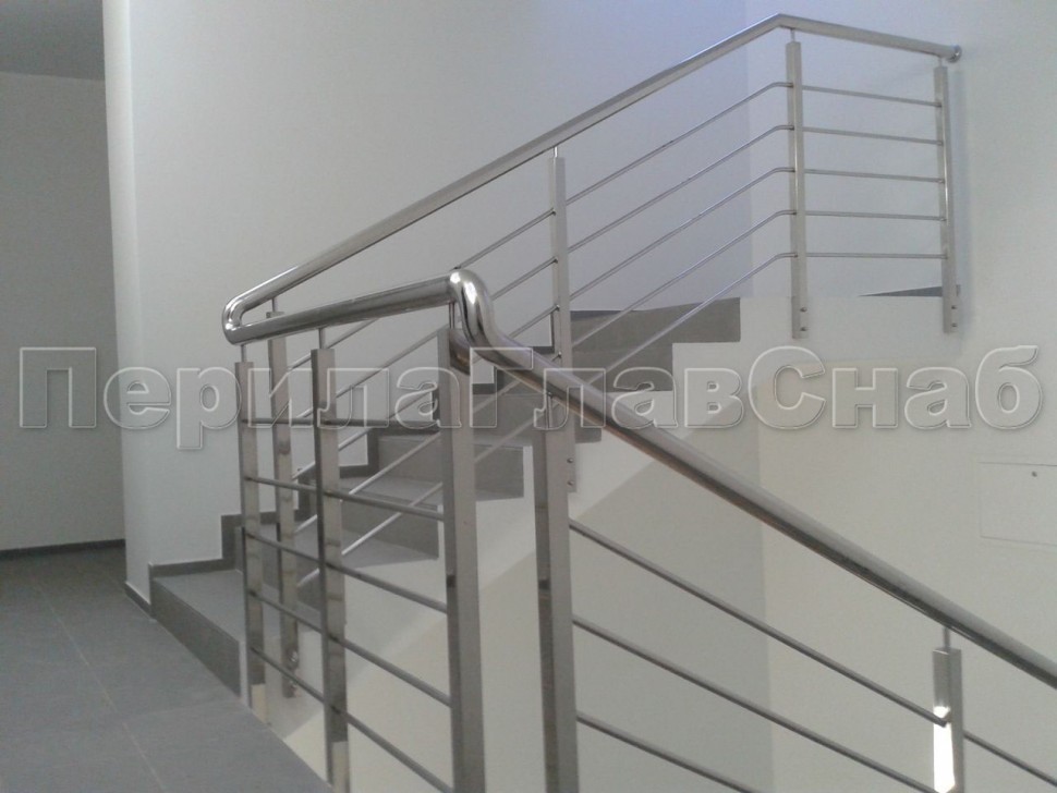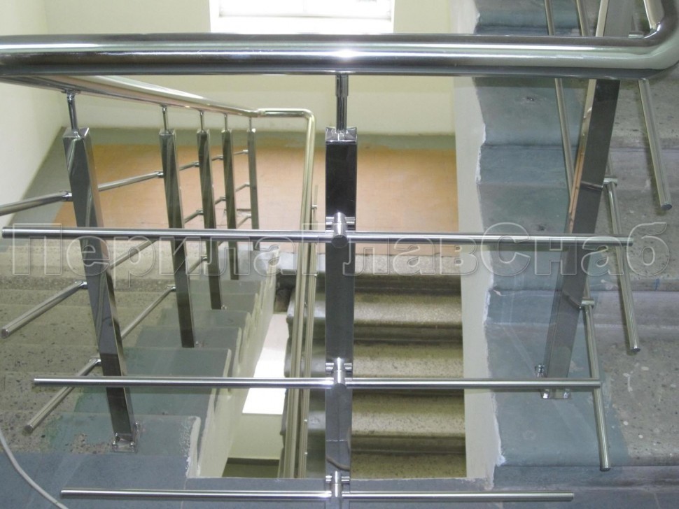 Четыре ригеля на сварке, круглый поручень и квадратные стойки