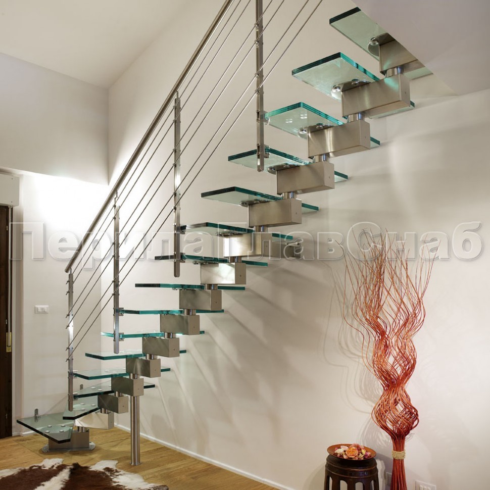 Ограждение для лестницы из нержавейки с зажимными стеклодержателями для крыльца