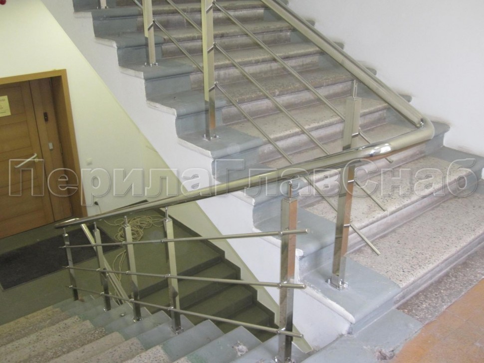 Четыре ригеля на держателях, круглый поручень и квадратные стойки