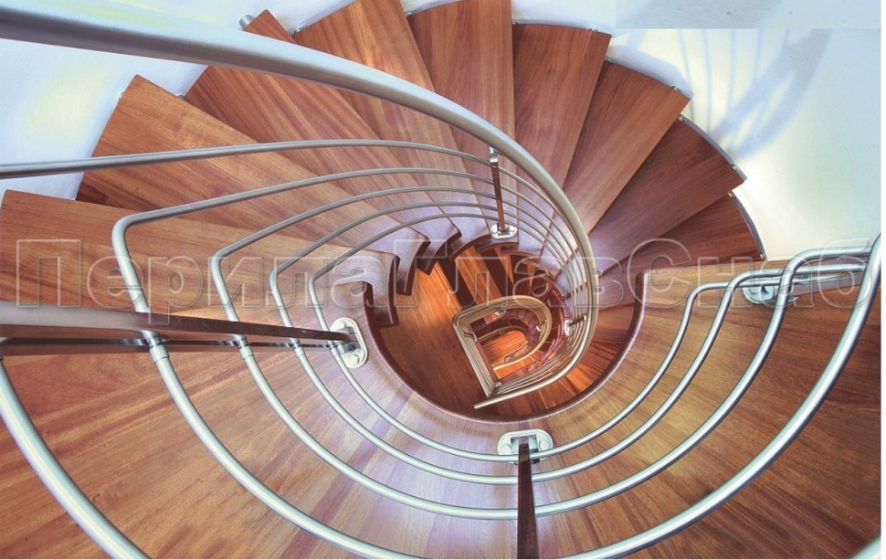 Ограждения со стойками в каждую ступень с круглым деревянным поручнем без ригелей