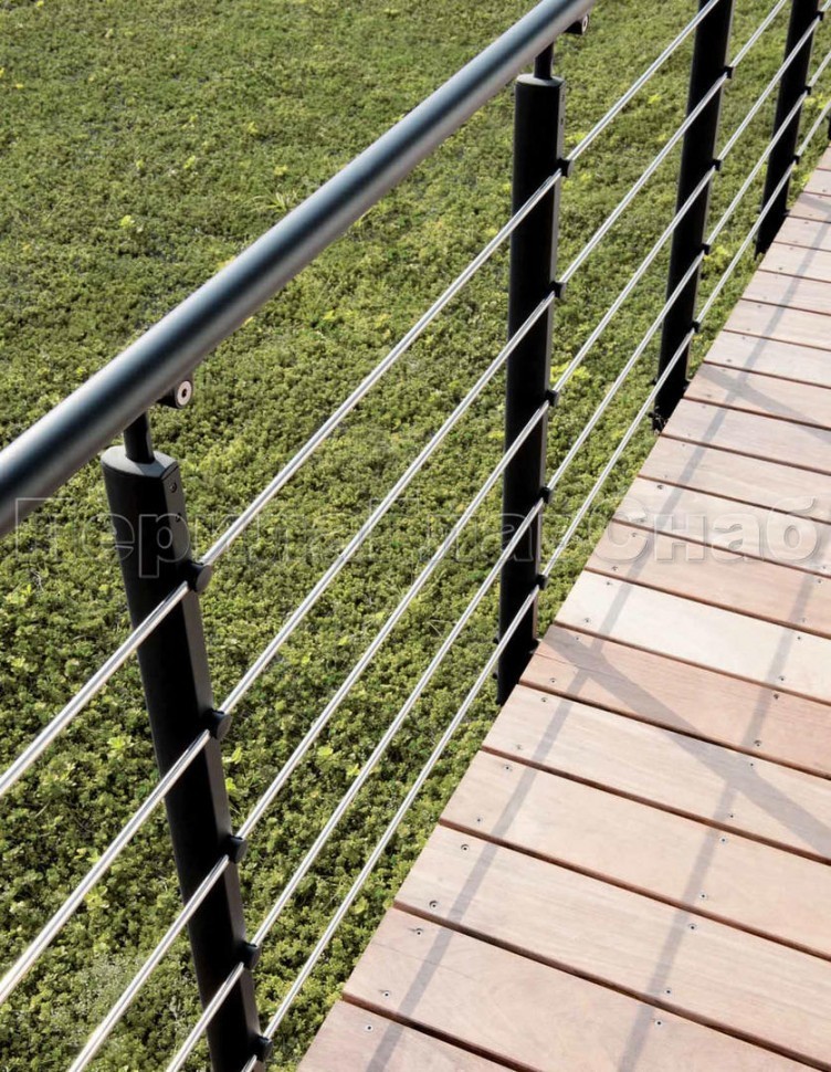 Ограждения из нержавейки. Заполнение из 7ми тросиков + декоративные наконечники