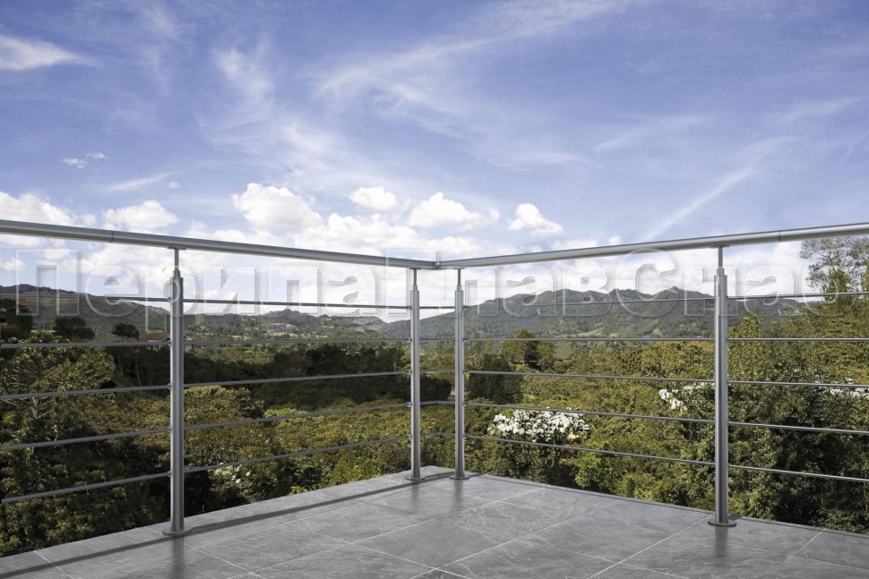 Ограждения из нержавейки. Заполнение из 7ми тросиков + декоративные наконечники