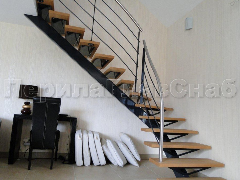 Ограждения с двумя стойками в каждую ступень с деревянным поручнем и без ригелей