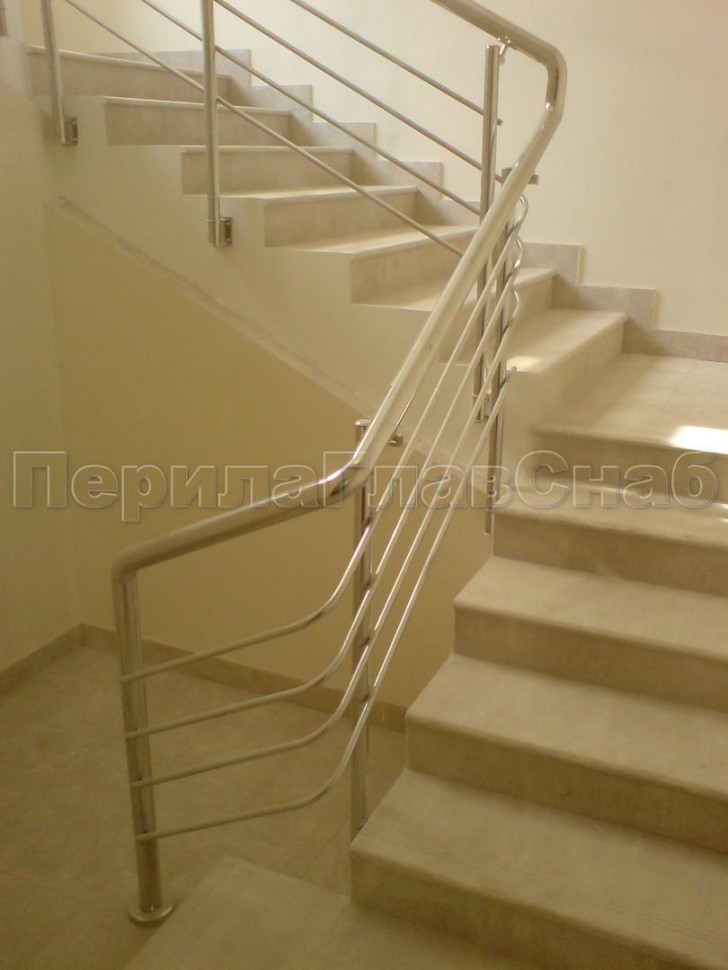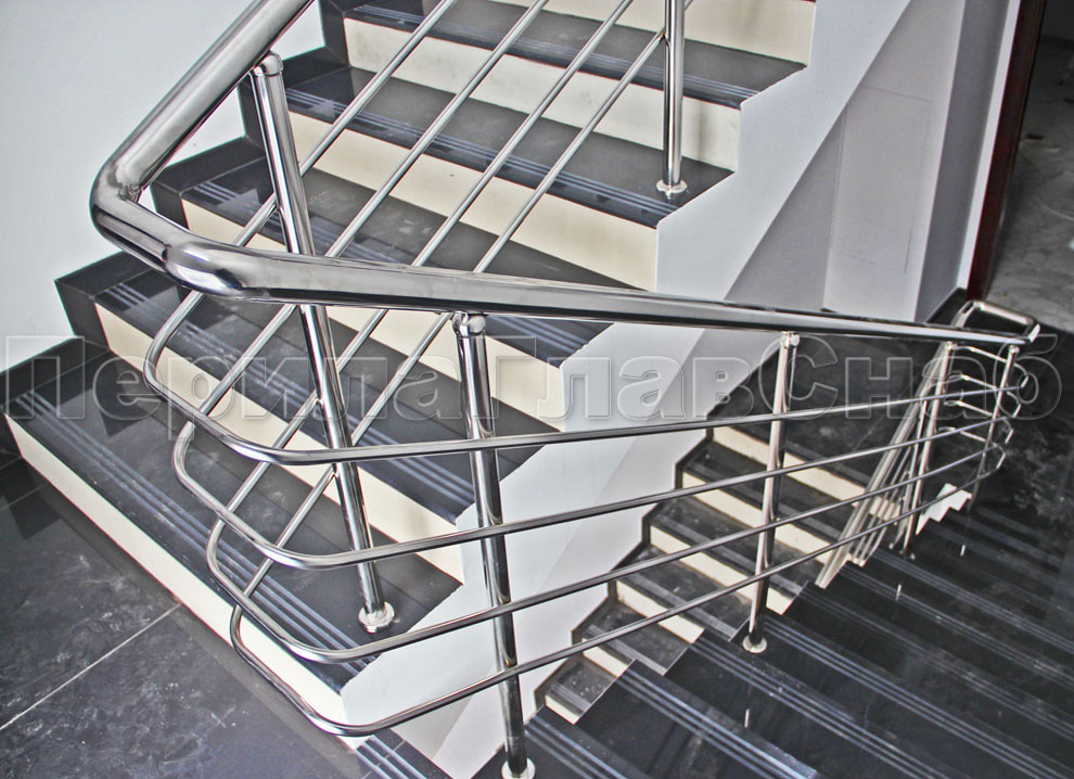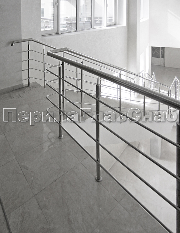 Четыре ригеля на сварке, круглый поручень и квадратные стойки