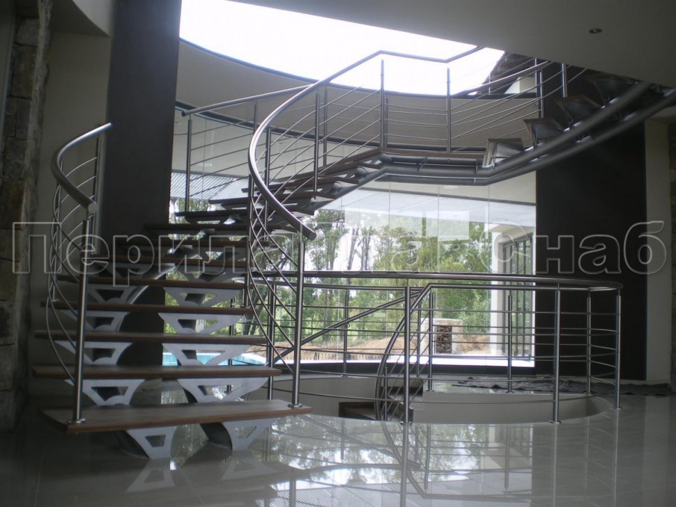Стеклянные ограждения винтовой лестницы и баллюстрады