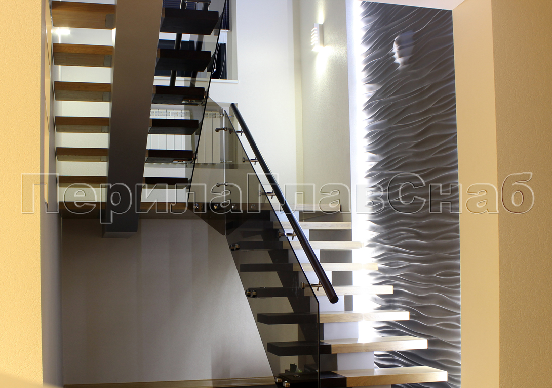 Создать ощущение увеличения пространства и «воздушности» лестниц вам помогут стекла "ультра брайт" с повышенной прозрачностью. Можно использовать матовые или тонированные стекла. На стекло можно наносить рисунок или надпись как красками, так и хим. травлением.