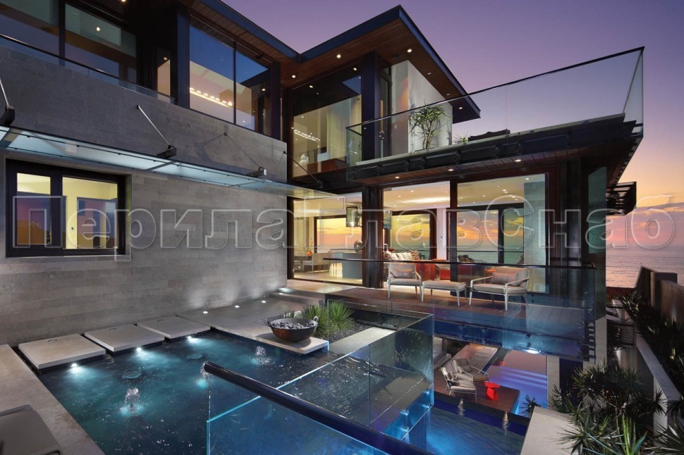 Ограждение с деревянным поручнем на выносе на точечном креплении