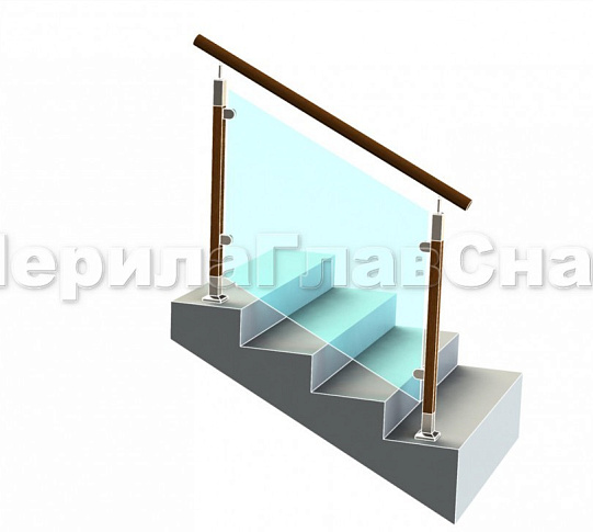 Ограждение с деревянным поручнем с зажимными стеклодержателями и стойками