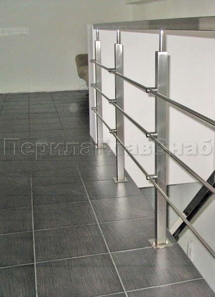Четыре ригеля на сварке, круглый поручень и квадратные стойки