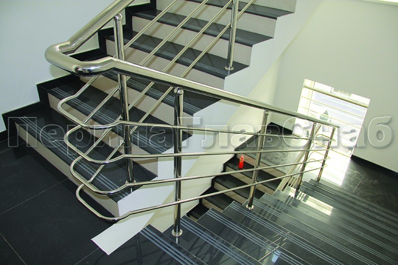 Четыре ригеля на сварке, круглый поручень и квадратные стойки