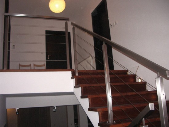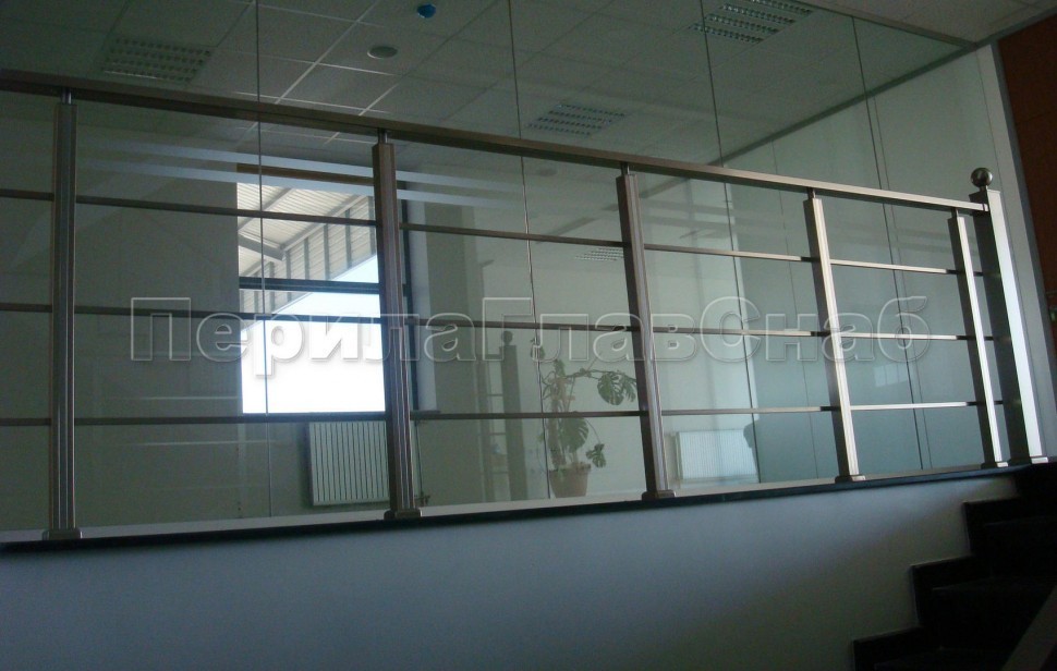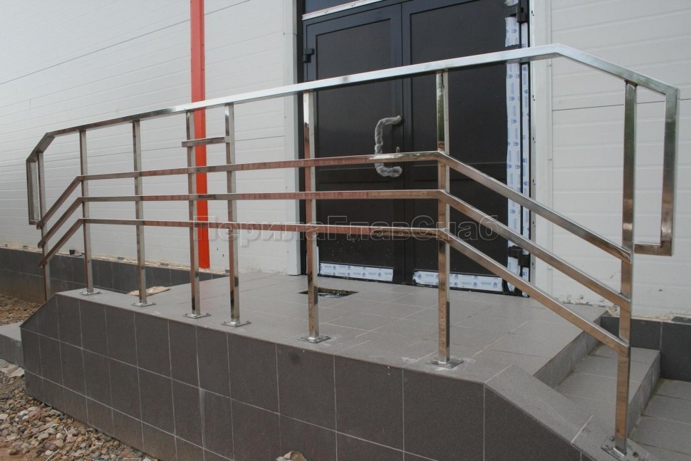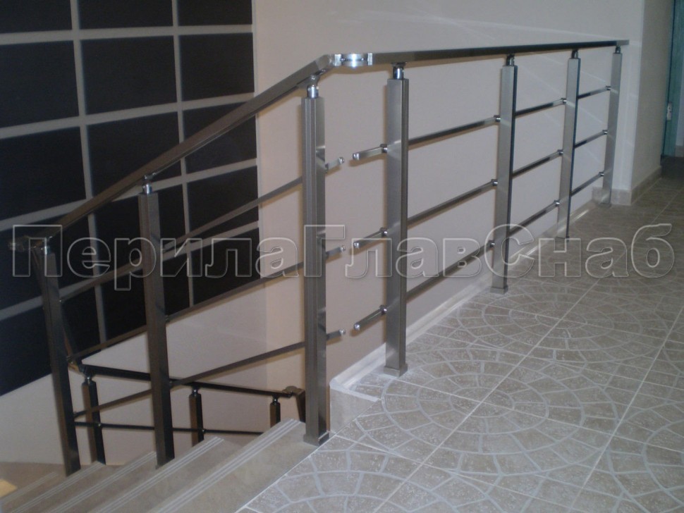 Записаться на встречу Три ригеля на сварке, квадратный поручень и круглые стойки