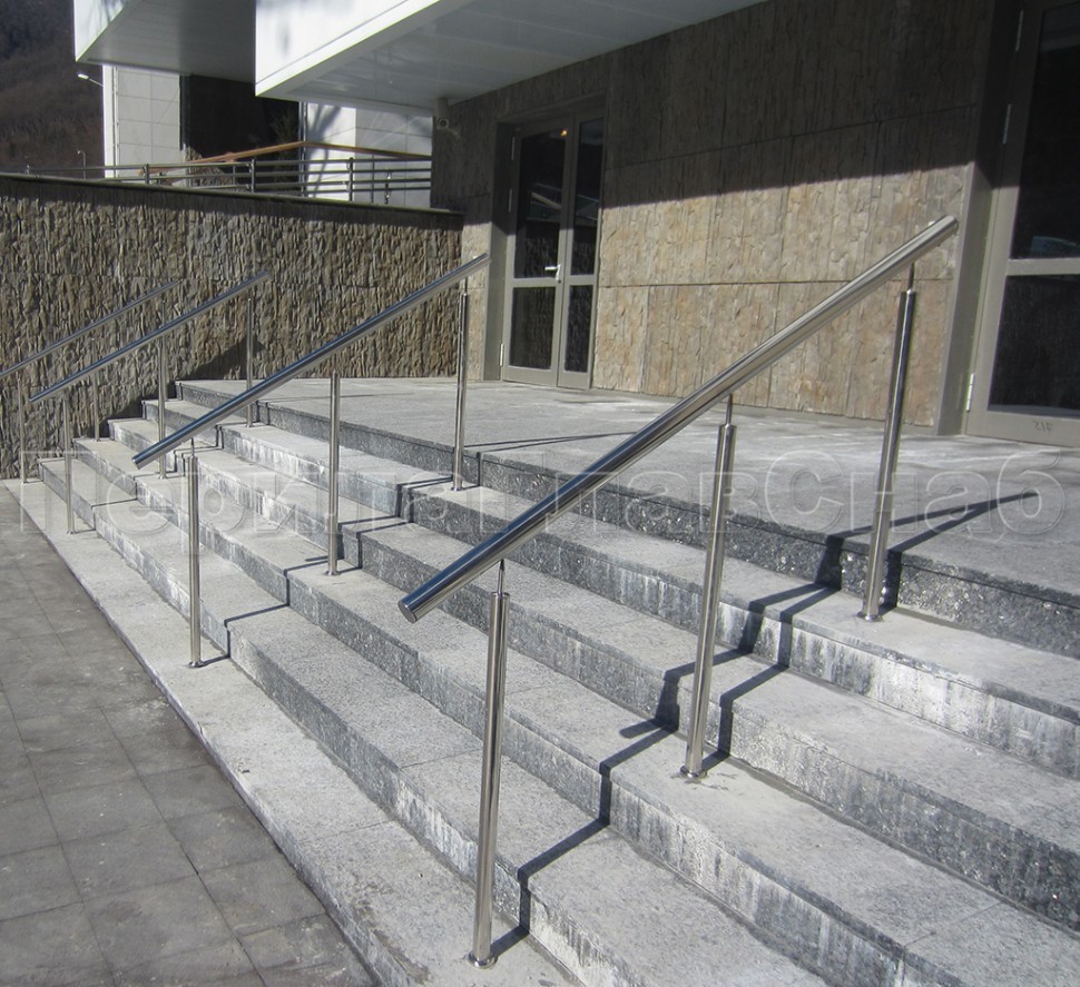 Четыре ригеля на сварке, круглый поручень и круглые стойки для крыльца