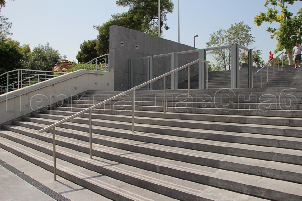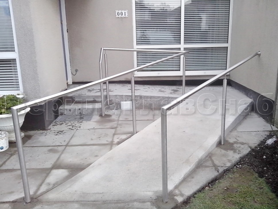 Нержавеющие ограждения для школ и детских садов с вертикальным заполнением “Частокол” - вариант №1 для крыльца