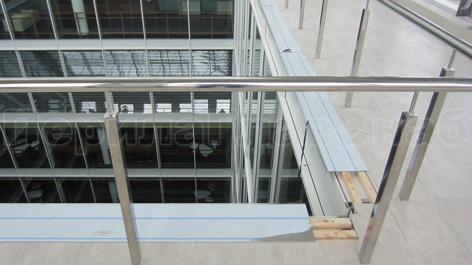 Ограждение кровли на несущем стекле и алюминиевом профиле