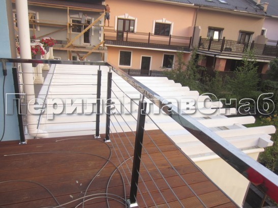 Ограждения из нержавейки. Заполнение из 7ми тросиков + декоративные наконечники
