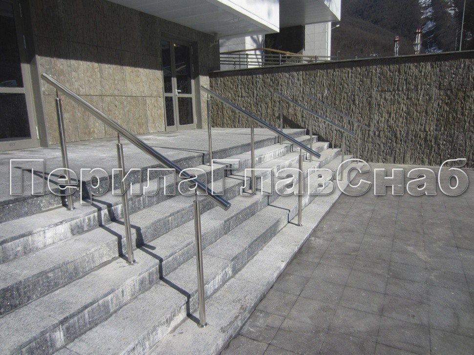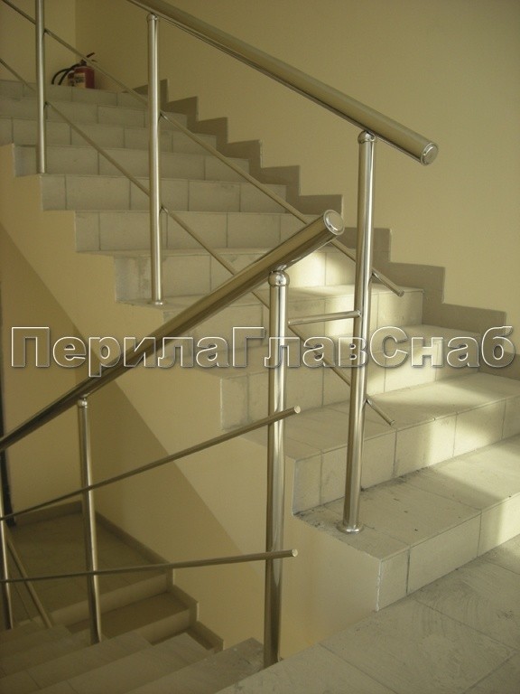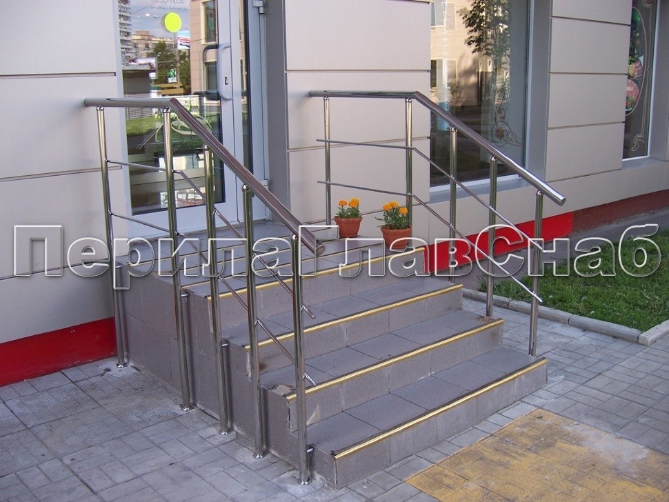 - Перила и поручни из нержавеющей стали отличаются гораздо более высоким уровнем износостойкости, чем, к примеру, деревянные изделия. Это свойство позволяет осуществлять установку лестничных конструкций такого типа в местах большого скопления людей (торговые центры, аэропорты, банки, вокзалы и проч.).