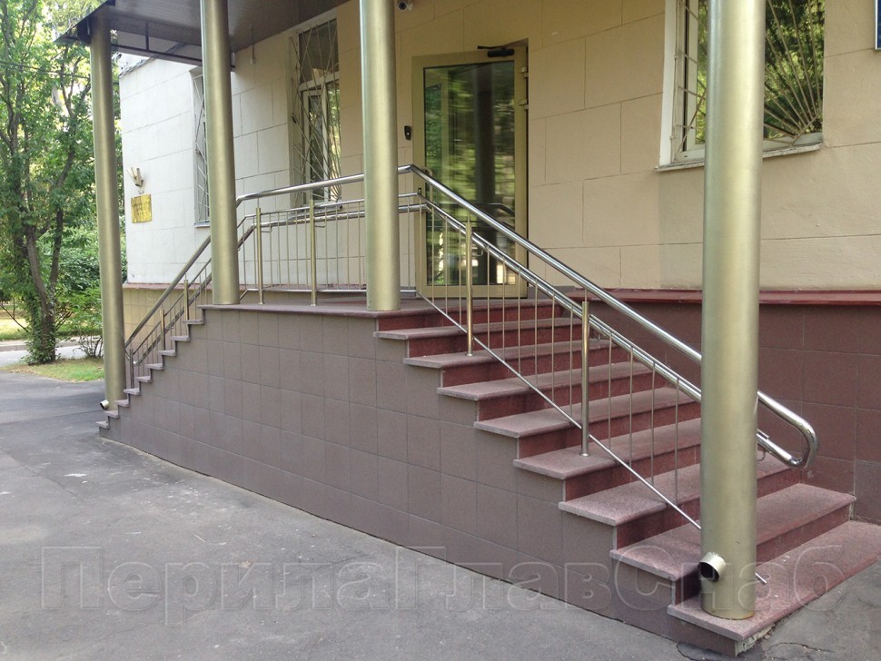 Нержавеющие ограждения для школ и детских садов с вертикальным заполнением “Частокол” - вариант №1 для крыльца