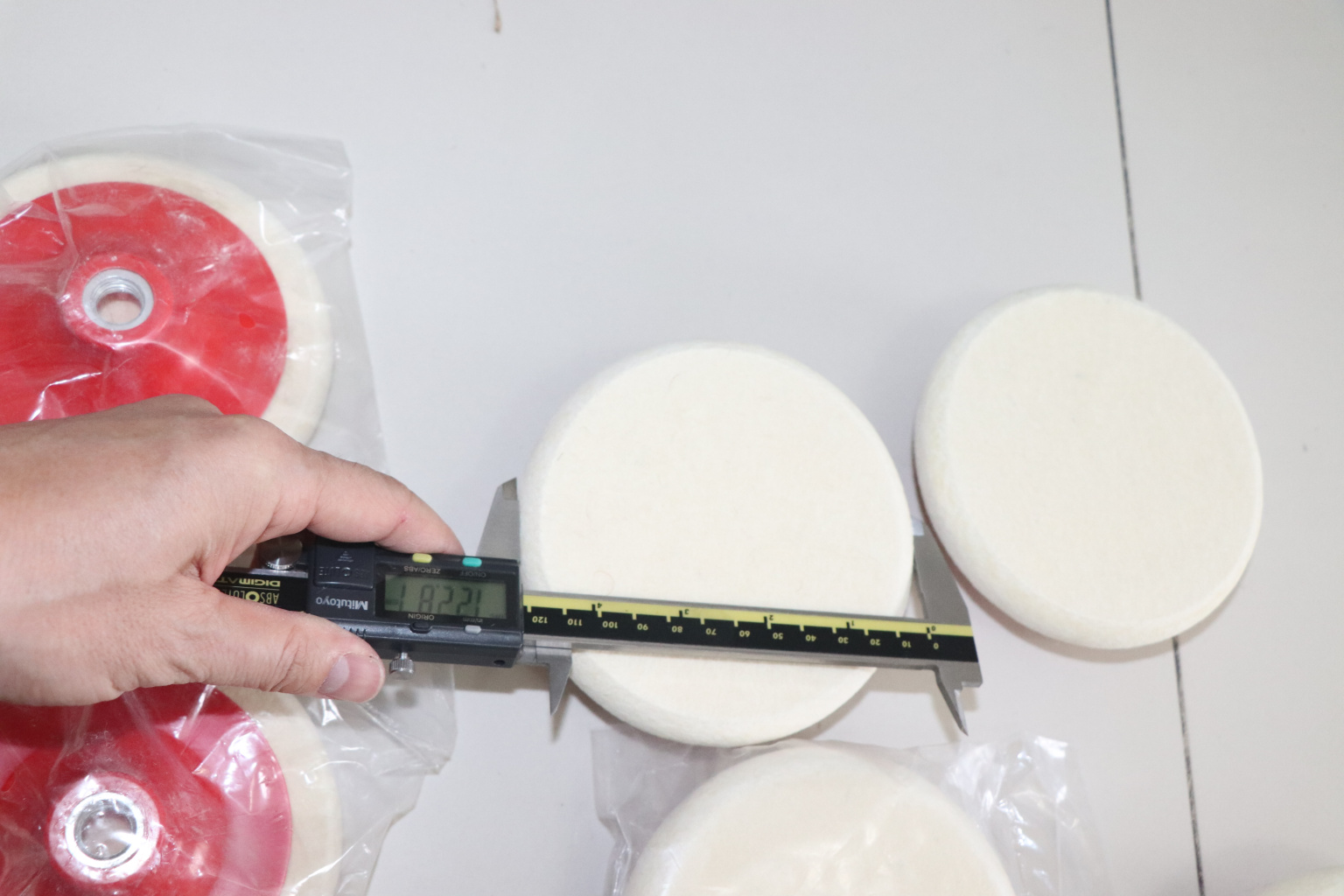 Войлок белый Ø125х20 мм, очищенный, на тарелке, сплошной k428