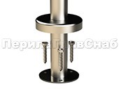 Фланец – это часть конструкции ограждения, позволяющая закрепить поручень в стену. Чтобы узнать место крепления фланца, уприте поручень, лежащий на ложементах стойки, в стену и обведите окружность поручня маркером. После этого монтируйте фланец в стену с помощью выбранного вами способа крепления.