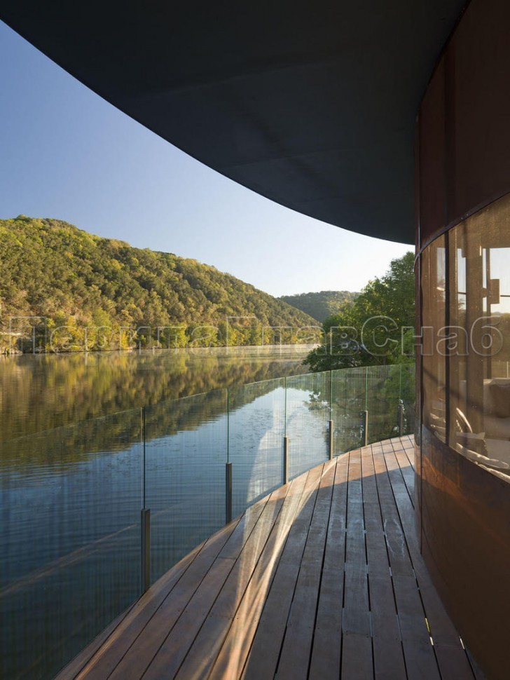 Несущая функция перераспределена между стеклом и стойками крепления.