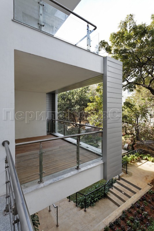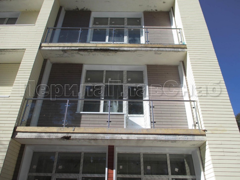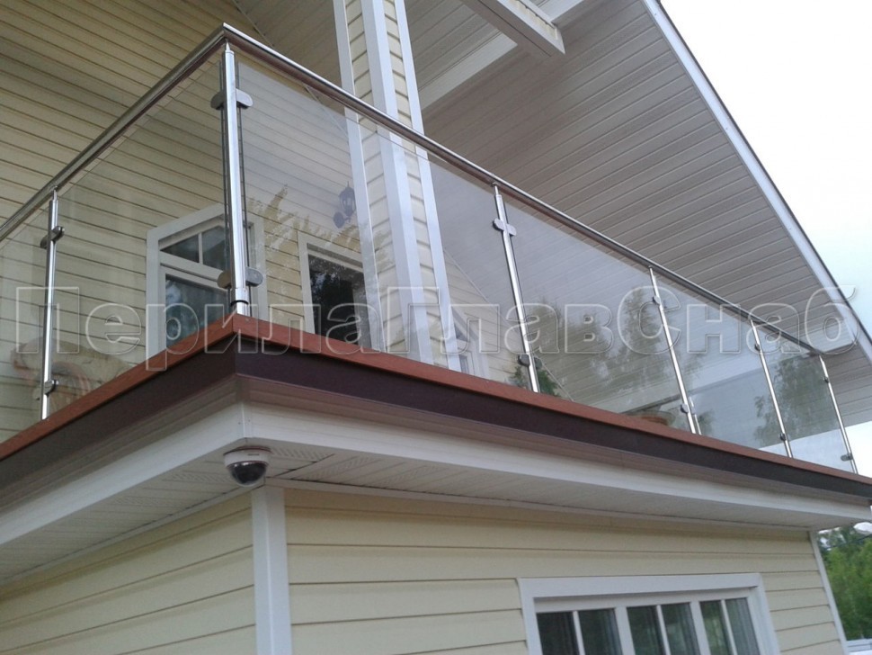 Стеклянные ограждения для балкона с нержавеющими стойками.
