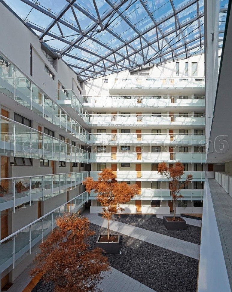Ограждение кровли на несущем стекле и алюминиевом профиле