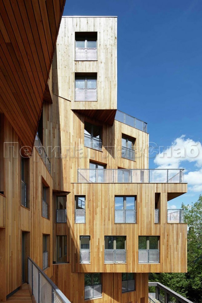 Ограждение с деревянным поручнем на выносе на точечном креплении