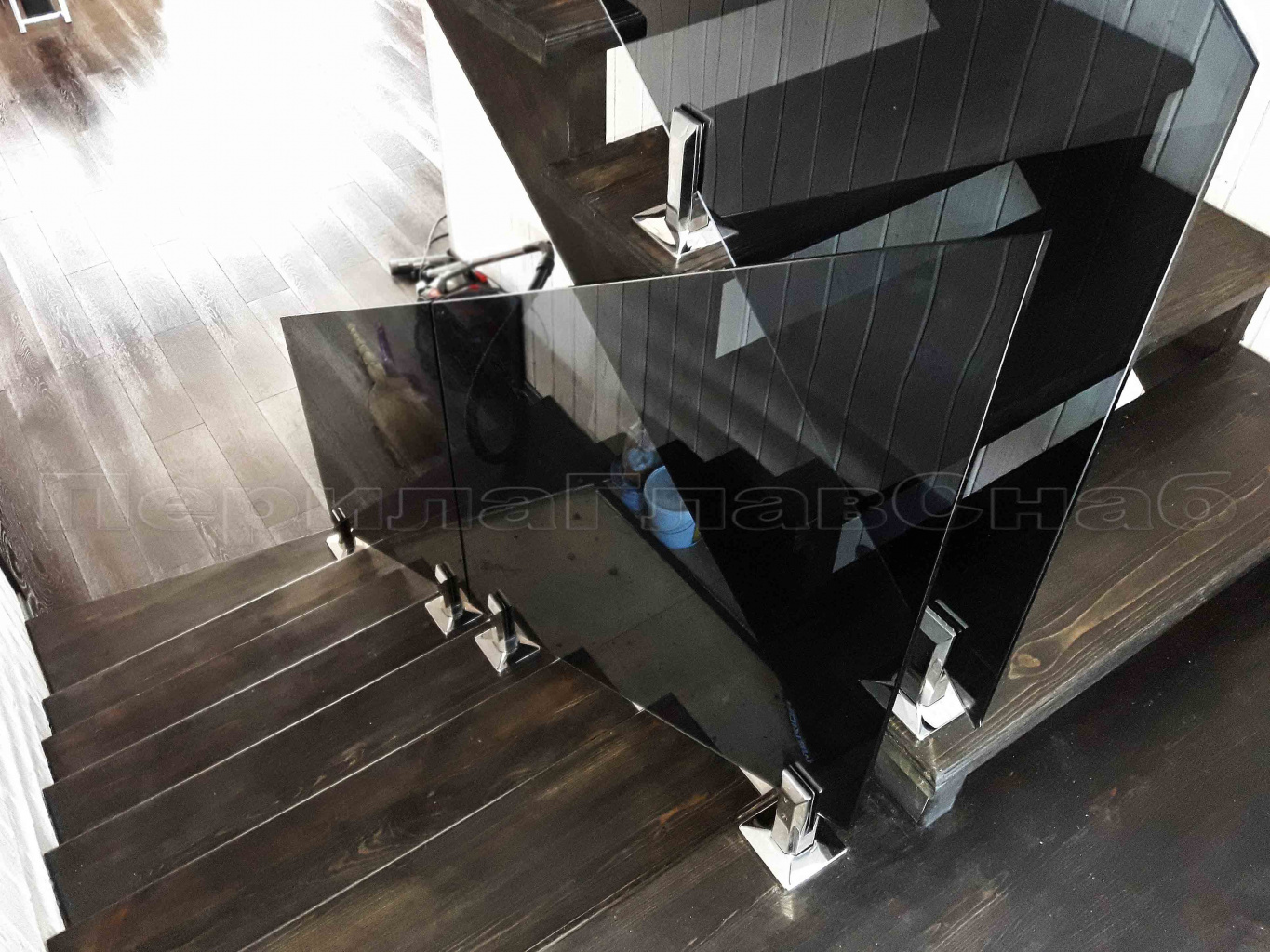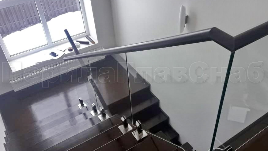 Ограждение лестницы с квадратными стойками и пластинчатыми стеклодержателями