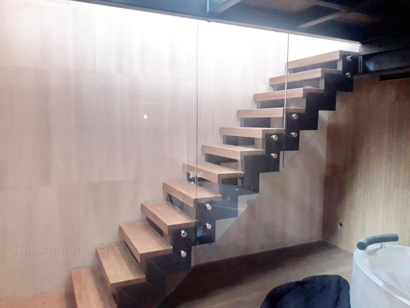 - Консольная лестница и ограждение без стоек.