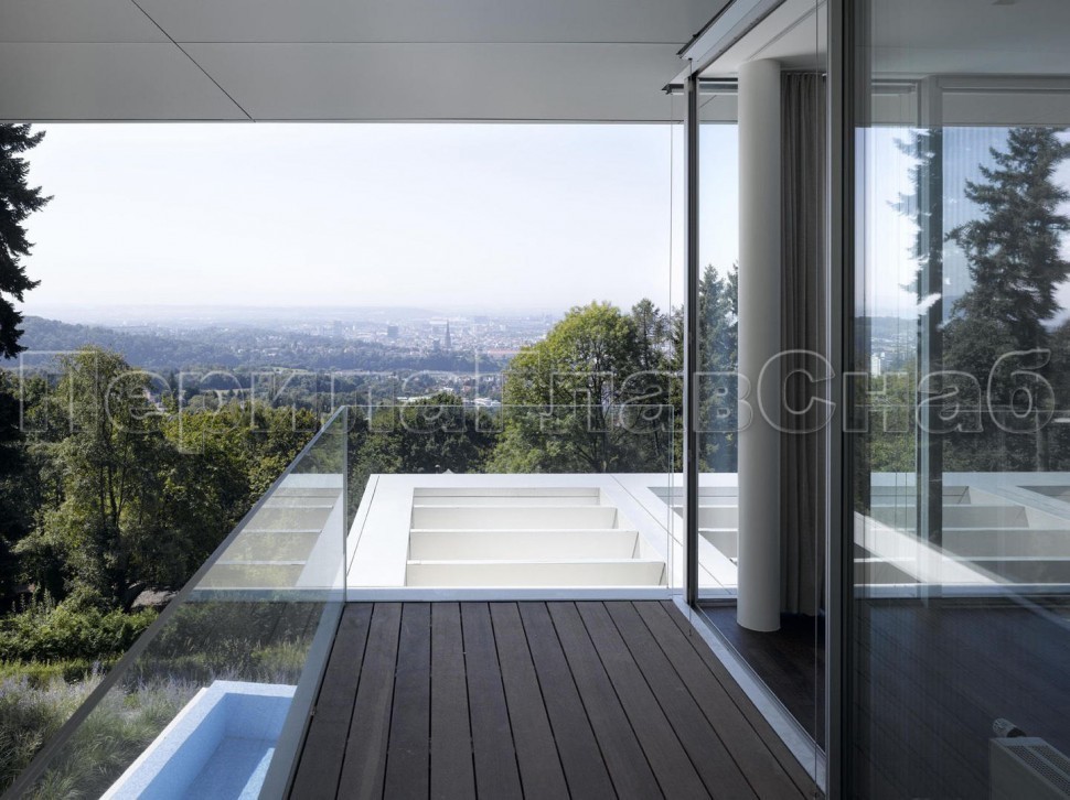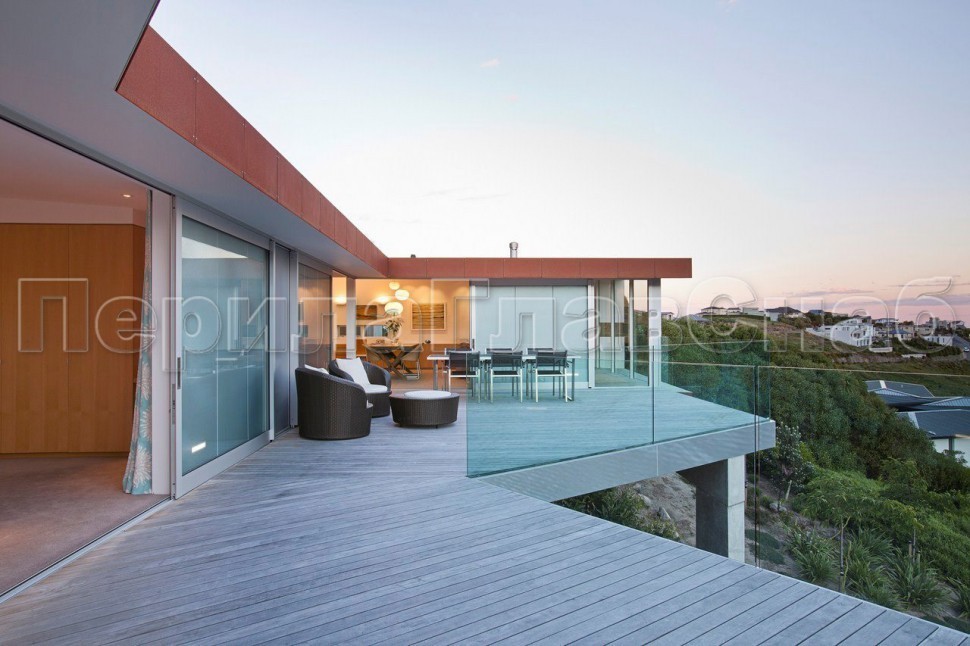 Ограждение с деревянным поручнем на выносе на точечном креплении
