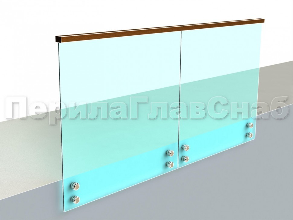Ограждение с квадратным деревянным поручнем на точечном креплении