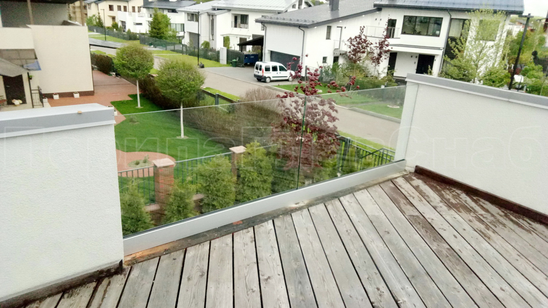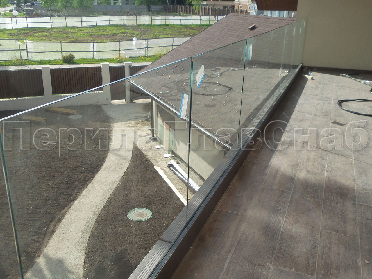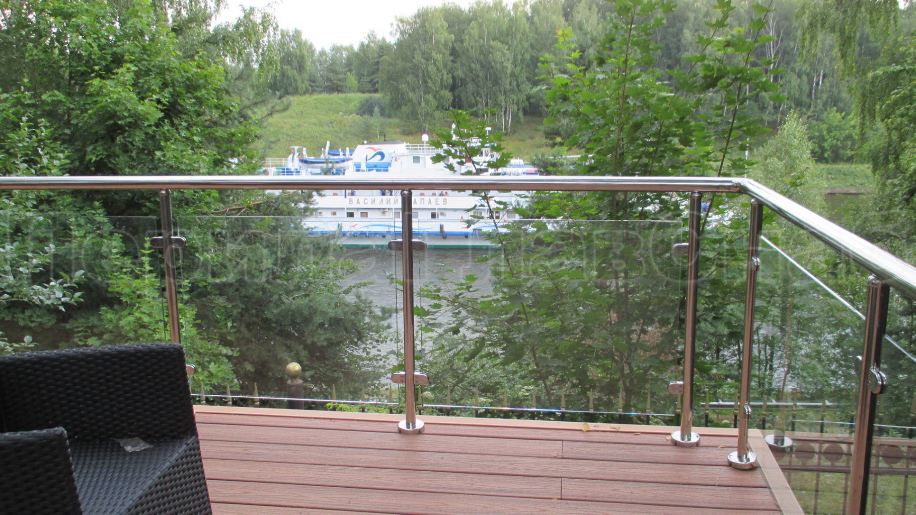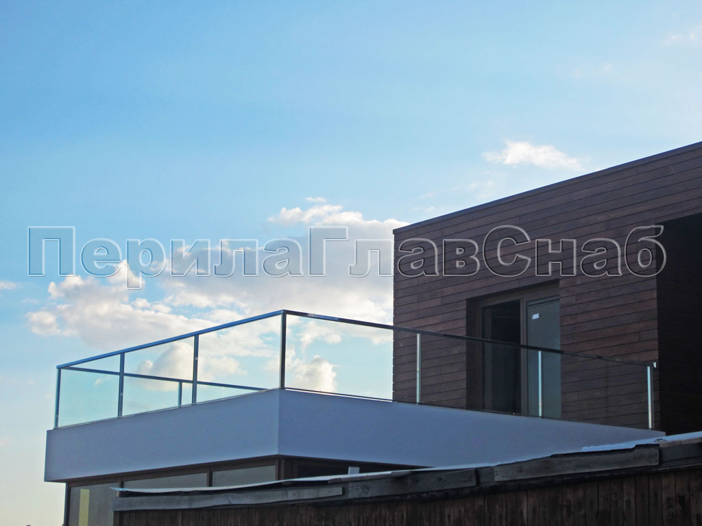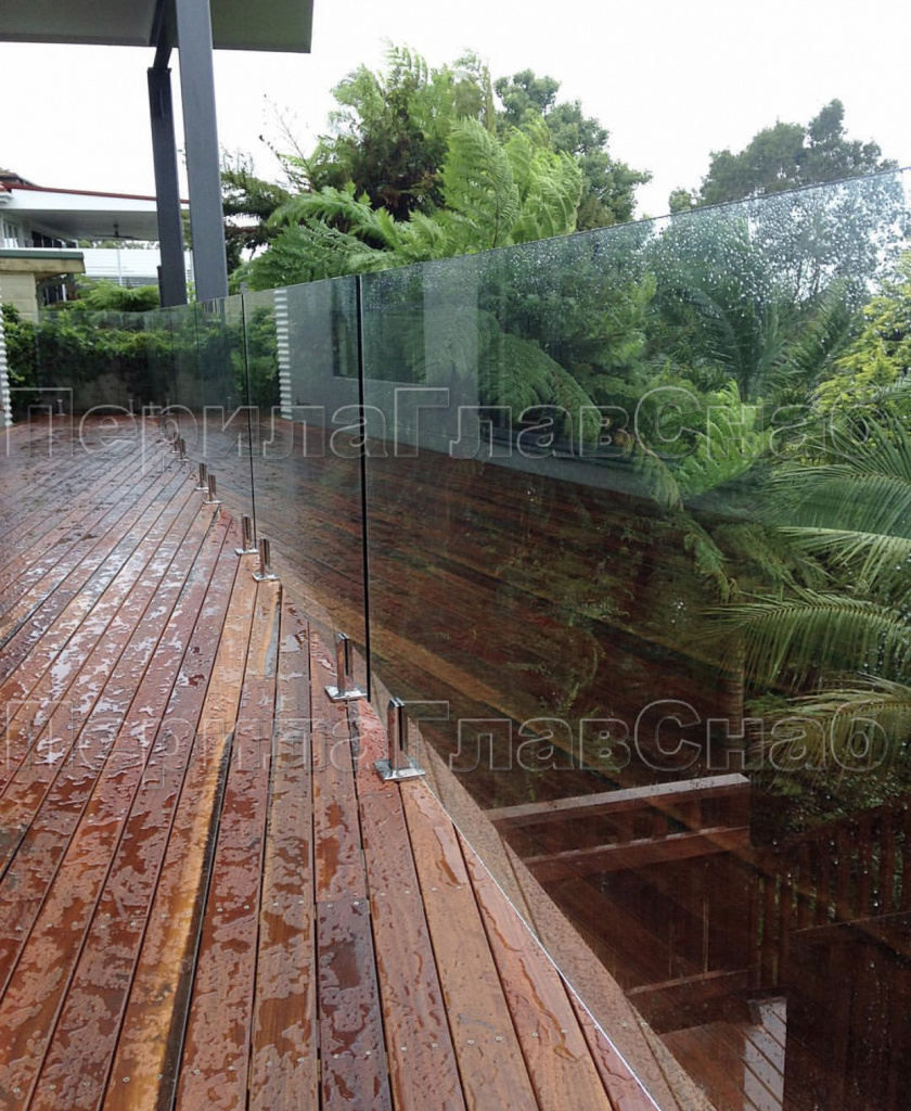 Пример ограждения террасы на несущем стекле.