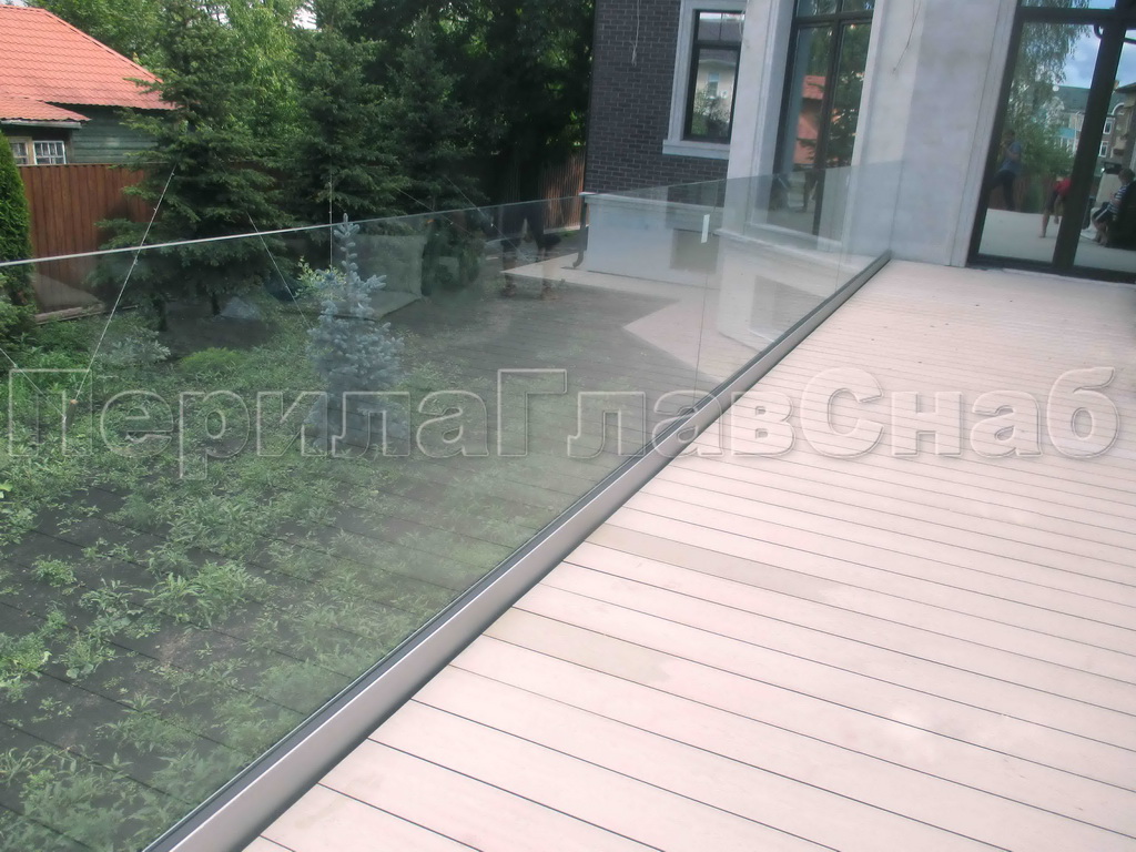 Стеклянные ограждения для террасы на профилеСтекло может быть установлено в зажимной алюминиевый профиль. Для стекол разной толщины и высоты мы разработали и изготовили собственные запатентованные системы зажимных профилей, которые выдерживают нагрузки до 5кН согласно СП 20.13330.2016. Для вас это означает, что установленные «ПерилаГлавСнаб» стеклянные ограждения будут соответствовать строительным нормам безопасности эксплуатации. |