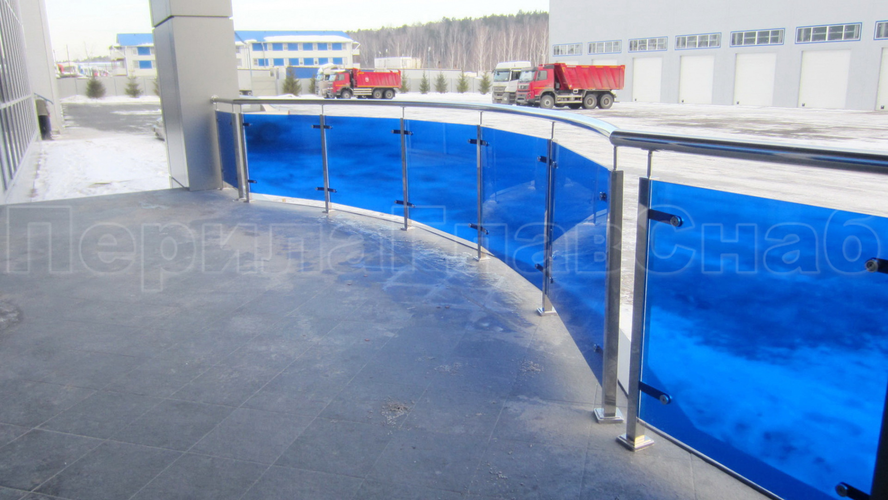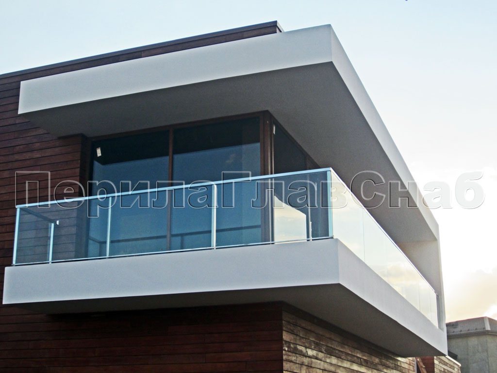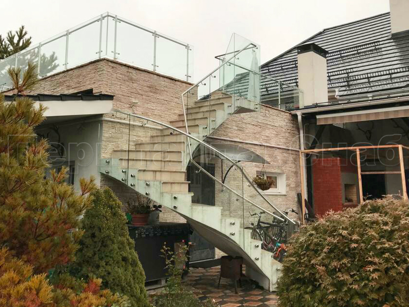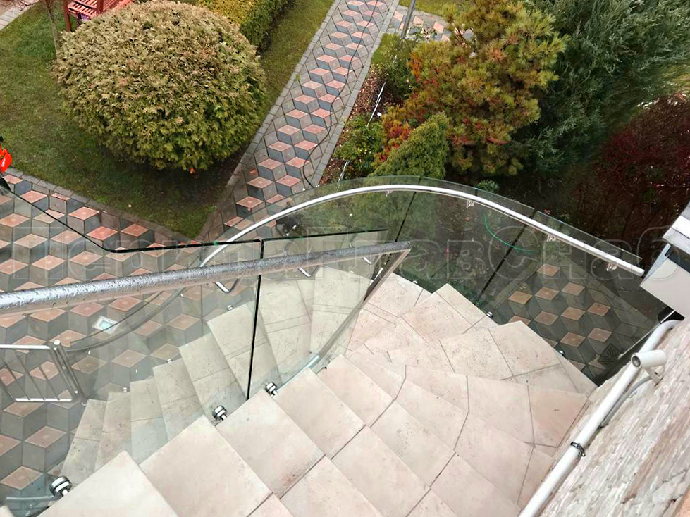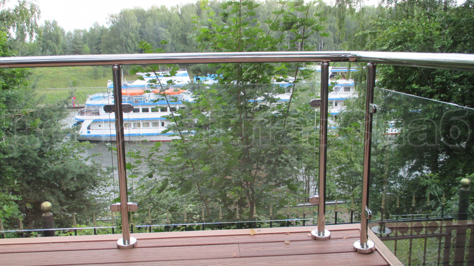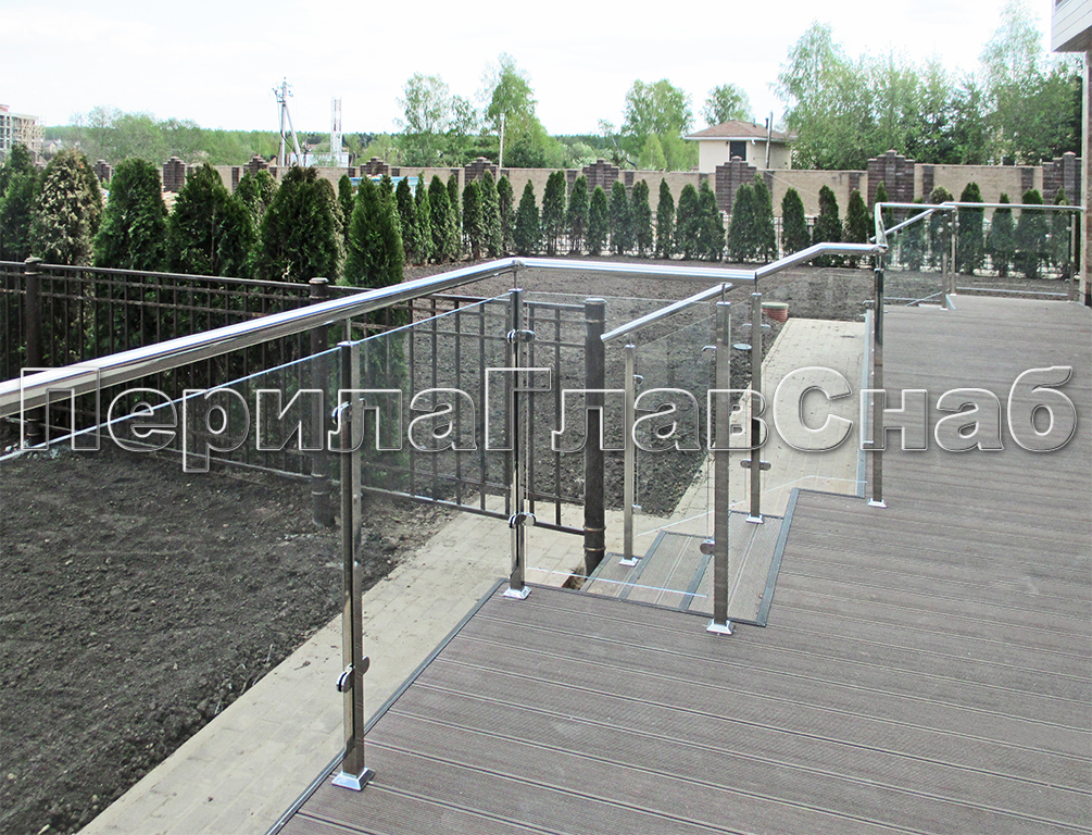 Стеклянные перила на несущем стекле на улице (для приусадебного участка)